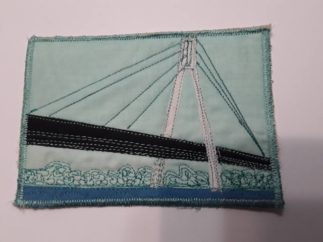 Алевтина, наши мосты архитектурно совпали! Общая особенность - арка, свод которой выложен камнями. Василисы, обратите внимание - нижний контур арки сделан необычно, из половинки черной пластмассовой молнии! Спасибо, Аля, за необычную открытку!