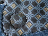 Внутреннюю заготовку тоже продублируем. Наметим, где устанавливать магнитные кнопки и, на это место наклеим еще небольшой кружок дублерина  (для плотности). Устанавливаем магнитные кнопки.