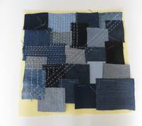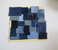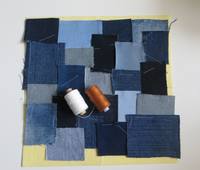 Нарезаем прямоугольники, произвольного размера из имеющихся у нас джинсовых тканей. Можно использовать старые джинсы.