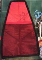 Теперь нужно подготовить внутреннюю часть сумочки. По той же выкройке вырезаем из ткани, подготовленной для подкладки, две части. Пришиваем к ним карманы, застрачиваем вытачки.