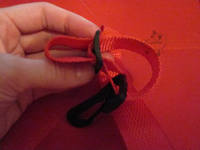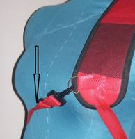 С противоположной стороны стропу с карабином также регулируем по себе и пристегиваем карабин за полукольцо на лямке, если нам нужно чтоб рюкзак не слетел с плеча.