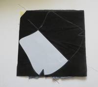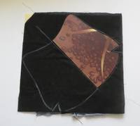 Теперь берем  ткань-основу  (я взяла вискозную салфетку) по предполагаемому  размеру  сумочки. Раскладываем наши лоскутики как нам нравится, затем закрепляем их булавочками, чтобы не разбежались.