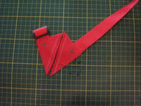 Делаем боковые крепежи . заготавливаем их из квадрата ткани , складываем пополам, вставляем стропу, отстрачиваем