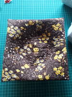 По величине этого замера выкраиваем 2 квадрата из ткани для лицевой и изнаночной сторон, 1 квадрат из вискозной салфетки, а 2-ой из ватина для уплотнения нашей прихватки. Ранее я уже делала прихватки без ватина, но с 2-мя слоями вискозной салфетки-получилось тонковато и после стирки прихватки потеряли форму. Складываем один отрез ткани с салфеткой, второй отрез с ватином, скалываем булавками или прищепками.