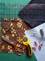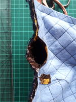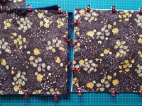 Снимаем прихватку, складываем пополам, выравниваем, скрепляем прищепками,