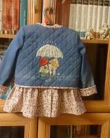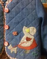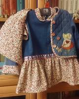 между походами в поликлинику сшила комплектик для своей Итульки(как она себя называет). Стеганный жакетик с ручной аппликацией и платьишко на подкладке, чтоб к тельцу было приятно.