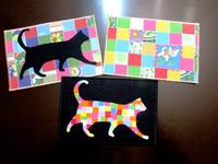 Второе- в октябре я посетила славный город Киров(Вятка), где встречалась с Людой-   л-юд-а. Мы прекрасно провели время и ,конечно, обменялись подарками. И поскольку мы обе любительницы открыток, то обменялись и ими.. Я получила от Люды две цветочные открытки и две фоновые заготовки, я их преобразила в открытки, на одной остались котята из под рук Люды, а на второй фон я присадила маму-кошку. Ну чтоб остатки черного фона не выбрасывать сделала еще одну открытку с цветной кошкой...