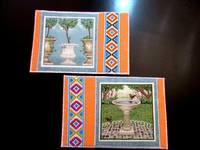 Люда от меня получила две довольно стандартные открытки с принтами фонтанов и три моих открытки-эксперименты по стежке: