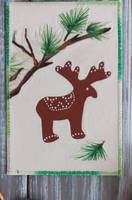 2. Открытка от Иры (Ящерки). Очень понравилась идея и лицевой части и задней, но чуть не хватило времени видно чтоб пристрочить. Кажется даже сама Ящерка об этом ранее писала и признавалась в этом. :blush: А точечная роспись оленя-пряника очень здорово придумано.