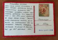 Alika, Белоруссия у нас нынче впереди по скорости доставки! Алёна, я тоже сегодня осчастливлена тобой! Открытка по качеству - высший пилотаж! Аленочка, спасибо за сладкий тортик и за сладкий рецепт печенья, за подарочки и за необычную марку! Очень приятный вечер у меня сегодня -буду разглядывать не один раз!Спасибо огромное!