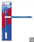 Во-первых, скажу, что таких, как вы рассказывали, маркеров, ручек у нас нет и в помине. Были у меня два, исчезающий и смываемый, вроде свои функции выполняли, но быстро засохли и от смываемого на некоторых тканях оставался голубой несмываемый след. Уже их выбросила, фирм не помню, но какие-то не особо известные, недорогие. А недавно появился в магазине маркер фирмы Prym исчезающий. Мне очень понравилось, что в нем кончик тонюсенький, как стержень в ручке. Попробовала почертить на паре тканек, то скорость исчезновения разная в зависимости от ткани, сильно не прижимала, а вдруг не исчезнет ? Но все же поняла, что это для быстрой работы, на то он и исчезающий. Пока не знаю, скоро ли закончится, но цена для нашего региона немаленькая  :(  Вот такой