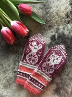 Надя, рукавички оказались для малышей. Схему нашла здесь. Искала детские узоры, по спецзаказу- котики, но все для взрослых. Это единственное, что удалось найти.  Узор на 48 петель, спицы 2,5. Эти рукавички, первые, связаны на ориганальное количество петель. Вторые уже вяжу побольше, увеличила в полосатом узоре на 4 петли и в узоре мышек-кошек еще на 4 (всего 8 ) петель. Сомневаюсь в длине.... приедет старшая внучка, узнаю. Первой ВТО сделала... это тоже немного изменит длину.