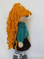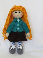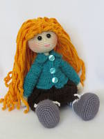 Связала кукляшку с шикарной шевелюрой для  самой маленькой  внучки, вся одежда и ботинки снимаются.