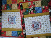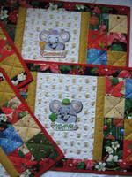 К празднику сшила подарки. Это прихватки, детские панношечки, дорожка на стол ,ланчматики.