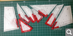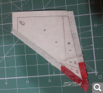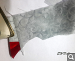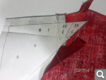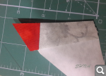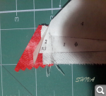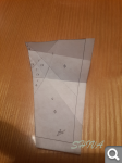 Ткань я прикладываю всем куском, выбирая место так, что бы минимизировать размер обрезков. Когда накладываете схему на кусочек ткани, следите за тем, что бы загнутый элемент вписывался в размер ткани с припусками. Иначе, развернув и пригладив, увидите, что ткани не хватило и придется отпарывать.