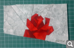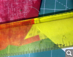 Не разгибая схему, отворачиваете ткань, расправляете сгиб ногтем, проходитесь утюгом. Переворачиваете, разгибаете схему и приклеиваете нужный элемент утюгом. Обрезаете с припусками ¼ дюйма