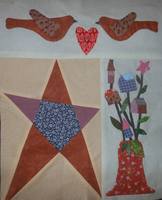 Лёка, Оля собралась 9 блок шить, разложила все блоки вместе и не знаю что теперь делать. На мой взгляд очень выбивается нижний правый (очень не хочется перешивать).  Посмотри пожалуйста каким лучше 9 делать, может и в него красного добавить?