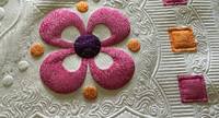 После того, как аппликация обшита по контуру, приступаем к заполняющей стежке фона. Если планируете одеяло- не переусердствуйте. Тут простое правило: чем плотнее стежка- тем рельефнее аппликация.