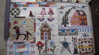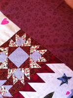 Лёка, Оля, девочки, собрала топ, были проблемы с размерами, но решила. Нужно будет сделать бордюр, думаю бордовый, но ткани пока нет, буду докупать. Может ещё сделаю отбивку темно-синюю, а потом бордо. Короче, смотрите.