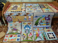 neremeeva, как ты аккуратно собрала блоки! Квилт такой нарядный!  :good2: а вышивать я думаю надо мулине в 2 сложения, Наташа, поздравляю, когда-нибудь ремонт закончится и будет у внука своя сказка в своей комнате! Молодцы родители и конечно бабушка! :give_rose: