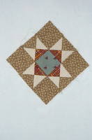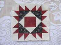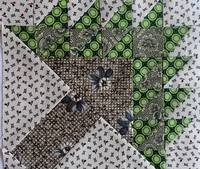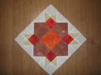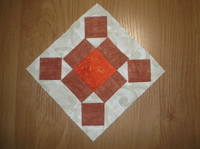 Как и обещала, разберем первый блок. Я предлагаю вам более простой (правда, более материалозатратный) метод пошива этого блока - попробуем избежать сшивание деталей по косой, и заодно воспользуемся советом самого автора шить блоки чуть-чуть побольше, а потом дорезать их до нужного размера. Откройте перед собой схему, чтобы понятнее было - начнем с углов.