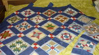 Ну вот и я наконец-то вернулась,но все равно продолжить пока мне могу.Нет синей ткани на фон и не знаю ,какую белую взять для окантовки каждого  блока,так что     пока буду смотреть на сделанные топы и готовые одеяла и облизываться.Очень понравилась кайма с квадратиками у Л-юд-ы ,хочется сделать такую же.А вообще все МОЛОДЦЫ!!! :clapping: :clapping: