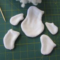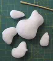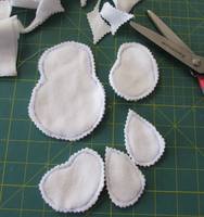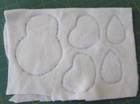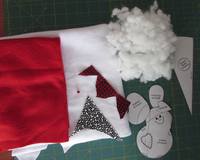 5. Вырезаем детали снеговичка, выворачиваем их,  набиваем наполнителем и зашиваем отверстия. Учтите, что флис тянущаяся ткань, поэтому  без фанатизма, пожалуйста  :D