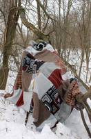 Все это я сшила, на бэк пошла фланель из запасов бабушки, доставшихся мне по наследству. На этот раз цвет вполне подходит, по-моему. В швы я проложила нить акрила. Ею же обшила петельным швом края.