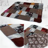 У меня сшился эклплед. Эко - потому что плед этот сделан из б/у вещей. Затевалось все из-за красивых кусков, связанных в технике пэчворк. Туда же пошли несколько шарфов, джемпер мужа и платок.