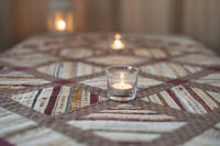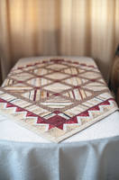 из кромок тканей квилта BOM First Ladies, который я шила в 13-14 году наконец-то закончила вещицу, можно сказать скатерть . 110х110 см. Блоки собирала долго, просто настрачивала кромки на основу. Потом собрала топ, никак не могла закончить, то тканей подходящих не было, то чего-то еще  :blush: Записалась к Марине Сохончук на мк по бордюрам. И как-то все сложилось. На обратной стороне икеевская ткань. Не очень в тему, но мне нравится по структуре, плотная, хорошо держит форму. Простегала просто в шов топ и подклад.