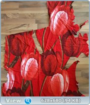 И вот пошла на рынок и купила кусок постельного сатина, достаточно толстого. И все цвета, кроме зеленого, и вазы, вырезала оттуда. Кусок был....как будто его из купнокалиберного пулемета расстреливали :mosking: Дырки везде и повсюду, где находился нужный кусочек цвета. Пошла и выковыряла с полки, вам показать. Сейчас уже не так наглядно, я его потом разделила на вразумительные куски, убрав дыры из середины. Сейчас он выглядит вот так