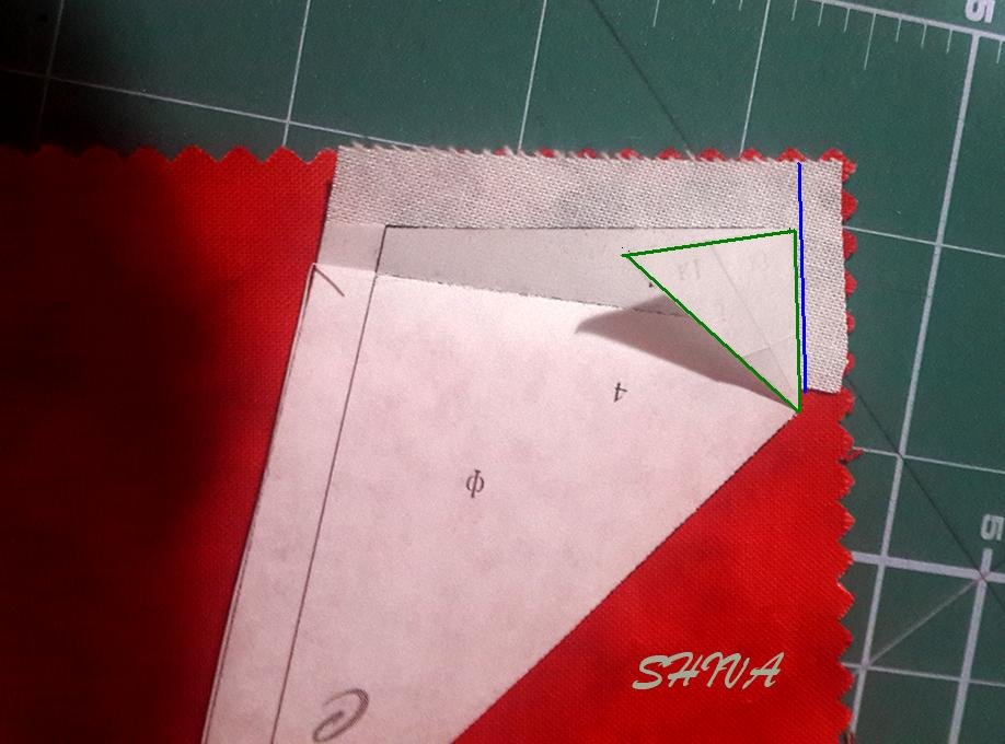 Прикладываете к следующей ткани схему, на которой отогнут элемент. он должен ПОЛНОСТЬЮ ВПИСЫВАТЬСЯ в кусок ткани, подложенный снизу