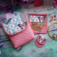 Сшила чехольчик для ножниц в комплект к сумочке для процессов и текстильному конвертику. Сумочку и конвертик показывала раньше. На фотке сняла всё вместе.