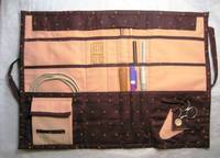А я, наконец, сшила органайзер для круговых спиц и крючков. Выполняла заказ, расположение кармашков сама придумала, исходя из имеющихся инструментов.