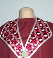 Ну вот, нашла фото воротника. Здесь - лента ш. 12мм, цена примерно 4 руб., косая стоит 8,50. При этом не надо ничего закреплять, застрачивать края и т.д., ленты сами себя держат, только край потом прострочила.