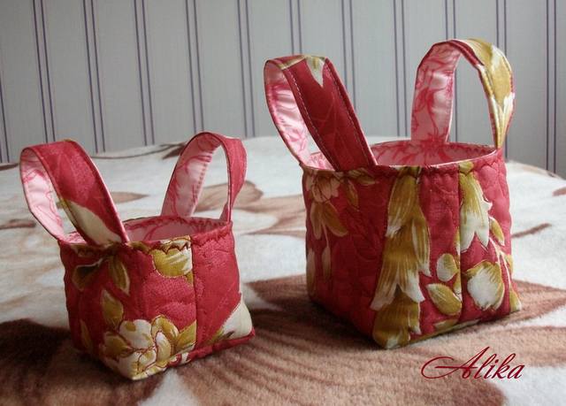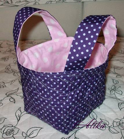 Мне очень нравятся текстильные корзинки.  Фиолетовая моя,  в активном пользовании, а двойняшки  - для племяшки (в стихах уже заговорила  ;D)  Они все маленькие, мутную фотку с меньшей корзинкой показала для понимания размеров  :)