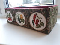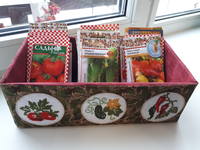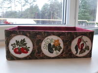 Я тоже смастерила себе коробочку под семена-вернее это скорее ящичек, т.к. внутри не картон, а фанера. Аппликация с вышивкой крестиком. Теперь все будут лежать на своих местах, а не валяться где попало  :mosking: