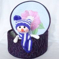 Новый рукодельный год у меня начался с коробочки-шкатулки. Сначала просто решила попробовать технику "пицца", сделала цветочек, ну а потом же надо куда-то пристроить, чтобы не валялся в закромах, так ведь и затеряется. Вот такая коробочка-шкатулка у меня получилась, ткань сатин, стежка нитками мультиколор, размер немаленький 25*12см.  :laugh2:  А Снеговичок для Яны Kobra пока работает у меня  фотомоделью. ;D
