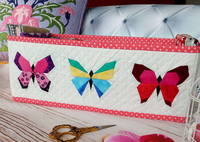 Автором предлагалась схема шитья по основе пироженок и кружки, но мне это не подходило никуда, а вот бабочки - само то. Мне они давно приглянулись и захомячились в папочку хотелок. Их схема бесплатная. Бабочки довольно маленькие, так что решила шить не по бумаге, а по фризеру. Не зря же ШИВА МК делала  ;)  Ира, спасибо  :give_rose: Твои уроки по шитью розочки пригодились!