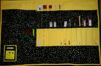 Вот из ткани с прошлой закупки сшила органайзер для спиц и крючков.
