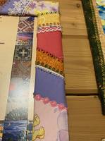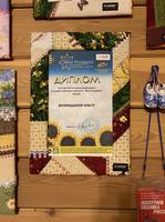 Появившаяся свободная после перестановки мебели стенка должна быть украшена. "Одеваю" лоскутные дипломы в лоскутные рамки и развешиваю в мастерской. Рамочки сшиты в технике "крейзи", украшены декоративными строчками, бисером, кружевом, бабочками-цветочками и прочее.