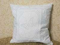 Krona75, Настя, закончила все-таки я учебный образец. Самыми сложными для меня оказались малюсенькие кружочки на крыльях бабочки. Решила сделать из образца подушечку, дорисовала от руки край, вот что получилось: ( вставлены разные подушки - первая белая побольше размером, вторая голубая поменьше