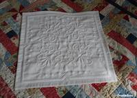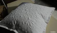 Ещё я бы хотела поделиться некоторыми советами конкретно по наволочке. Подобные наволочки предпочтительно шить "с ушами", это касается подушек с ришелье, белой гладью, бути и трапунто. Выигрышно смотрится уголковое задавливание подушки, на каждой стороне их может быть 1 или 2. Ну и последнее, чем когда-то давно со мной поделилась старая портниха: подушка за счёт своего объёма, пухлости, выпячивает центральный мотив и задвигает рисунок по краями. Т.е. в наволочке и в подушке зрительно рисунок воспринимается по-разному. Поэтому по краям не стоит акцентироваться на узоре, лучше дать краю больше свободного пространства, так называемого "воздуха".