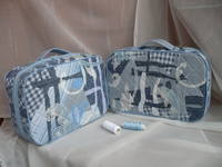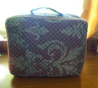 Поготовила верхнюю и нижнюю детали ,простегала . У меня в этот раз чамоданчик не большого размера . 25х20 .