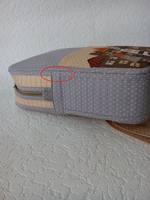 Надо уж было шить молнию до низа, как в чемодане, а я только верх сделала. И там, где стык деталей - толщина шва образовалась, я ее закрыла полосочкой ткани. И когда вместе детали сшивала, то не очень удобно и старалась с одной стороны прихватить больше, чтобы выглядело более менее...