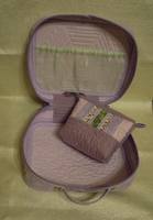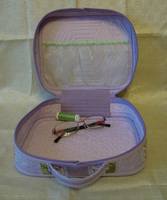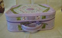 Поступил заказ - что-нибудь на подарок. Сшился чемодан, 20*25 см. Поставила два слоя пропаренного синтепона, в крышки еще добавила слимтекс 100 для пухлости. На верхней крышке карман из органзы на резинке. Цвет реальный на второй фотке. К нему еще небольшую косметичку добавила