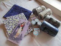 За какие-то две наволочки Наташа прислала мне целый кладезь для рукодельницы: ниточки  на больших и малых катушках,  тканьки моего любимого фиолетового цвета и  с цветочками тожа  хвиолетовыми, уже знаю. куда они пойдут.... шакаладку иностранную    и большую панельку про сад-огород. Своей дачи нет. булу шить из ткани...  Наташенька, спасибо тебе за такой  чудесный набор богачеств!