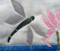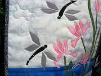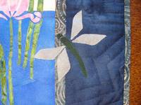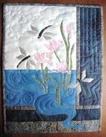 Я уже раньше писала, что до меня тоже добрался подарочек от Иры-Шивы: схемка колибри по фризеру, маркер с запасными стержнями и квилтик "Над гладью старого пруда". Девочки, фото конкурсное не передает всей прелести, аккуратности работы. Конечно, ткани сыграли значительную роль. Но мастерство исполнения - высочайшего уровня, вот уж, действительно, есть к чему стремиться: стежочки равномерные, полосочки рамки 1/2" абсолютно ров-ны-е (чего мне в моей работе добиться не удалось, увы :( ),  бейка... в общем, это БЕЙКА !  И крылышки у стрекозок блестят-блестят, совсем как настоящие  :tender: Ирочка, спасибо огромное за щедрость! :reverans: И от мужа тоже спасибо, мы с ним долго рассматривали твое произведение.  И что внутри? На ощупь тонко, но в то же время не плоско, рельеф передает.  Фото завтра, надеюсь поймать хорошее освещение.