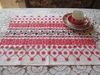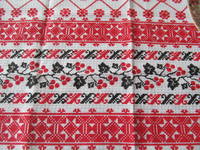 яркие черно-красные цвета на белом , незамысловатый рисунок -  узнаваемая  украинская народная роспись. Как же она обворожительна! Простая и в тоже время  манящая...   Жаль, кусочек маловат, :blush: я бы сшила из него  целый рушник....