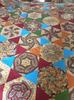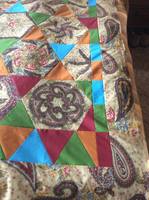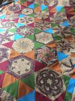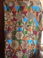 Закончила топ. Калейдоскопов было 36, 3 штуки остались. Кайму сделала из треугольников и прямоугольников и калейдоскопной ткани. Топ в готовом виде 175 на 215. Пока отложу, есть другое срочное. Шить понравилось. Спасибо за все подсказки!